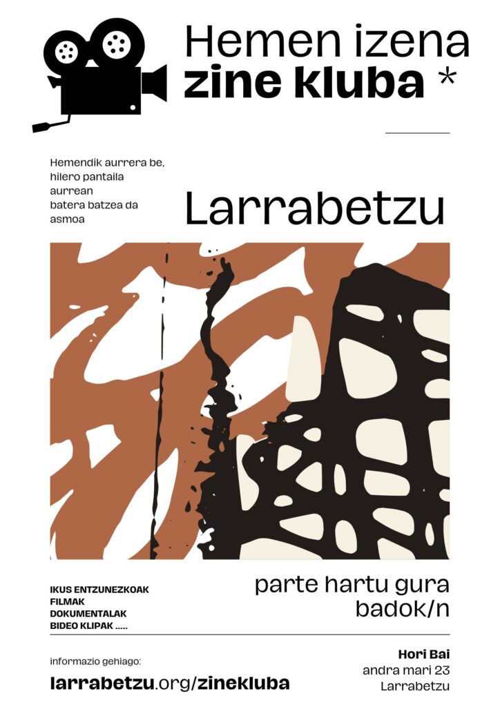 Hori Bai zine kluba* Larrabetzu filmak, dokumentalak eta film laburrak proiektatzeko eta eztabaidatzeko lekua da, eta kultura sorkuntza eta ikus-entzunezkoekiko maitasuna sustatzen ditu.
